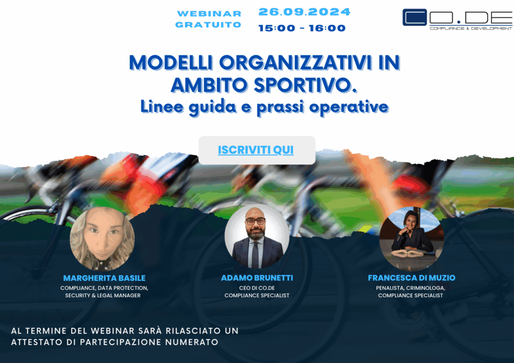 🎯 Obiettivi: Analisi dei Modelli Organizzativi in ambito Sportivo. Le società che operano nel mondo dello sport rientrano nella definizione di “enti”, di cui all’art. 1 D.Lgs. 231/2001 e, dunque, si applica anche a queste ultime la disciplina della responsabilità da reato di cui allo stesso Decreto. Seguendo l’ormai consolidato format LET’S CODE, in un’ora e con il supporto di esperti, illustreremo le peculiarità dei Modelli […]