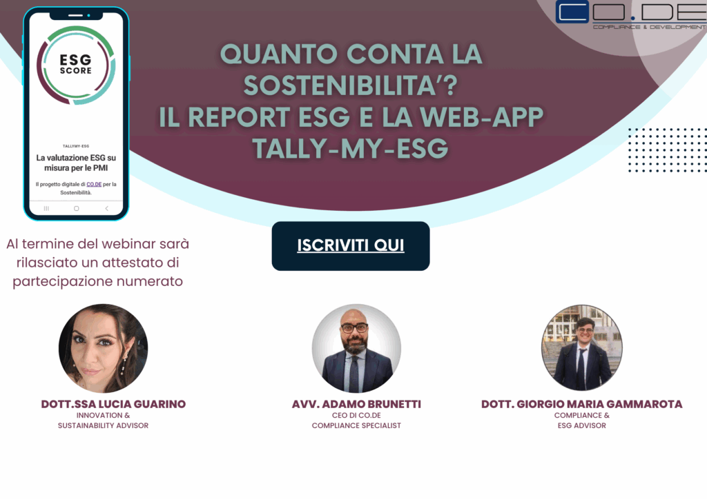 [WEBINAR GRATUITO] “QUANTO CONTA LA SOSTENIBILITA’? IL REPORT ESG E LA WEB-APP TALLY-MY-ESG”