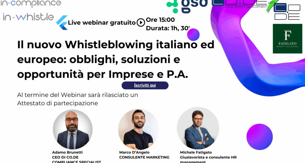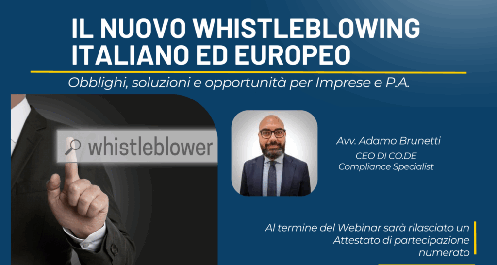 [WEBINAR GRATUITO] “Il nuovo Whistleblowing italiano ed europeo. Obblighi, soluzioni ed opportunità per Imprese e P.A.”