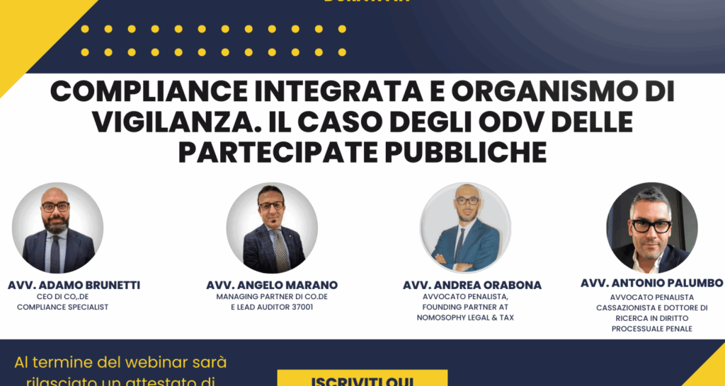 [WEBINAR GRATUITO] “Compliance integrata e organismo di vigilanza. Il caso degli OdV delle partecipate pubbliche.”