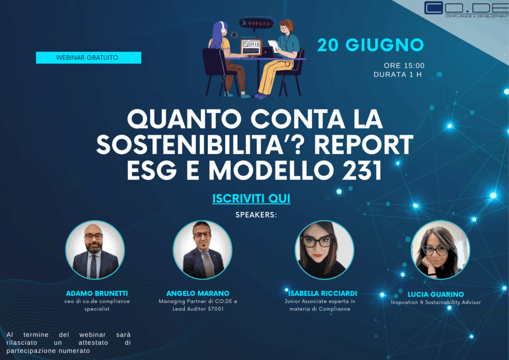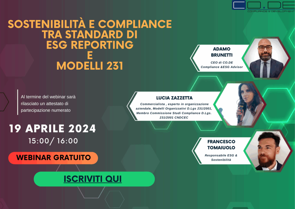 [WEBINAR GRATUITO] “Sostenibilità e Compliance tra standard di ESG Reporting e Modelli 231”