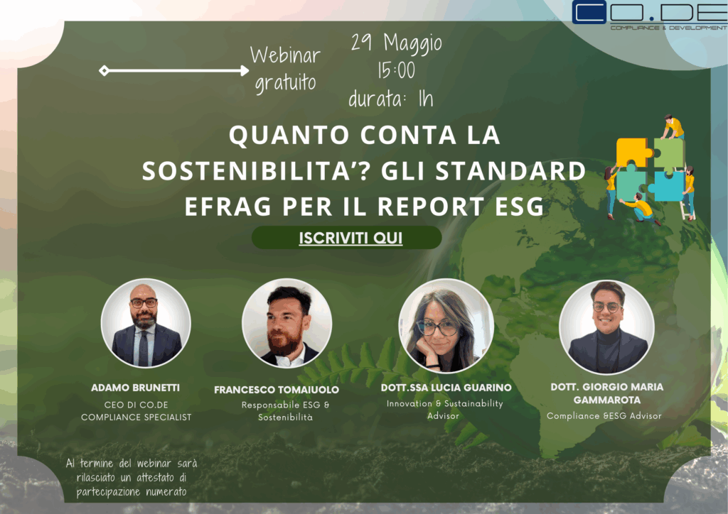 [WEBINAR GRATUITO] “QUANTO CONTA LA SOSTENIBILITA’? GLI STANDARD EFRAG PER IL REPORT ESG”