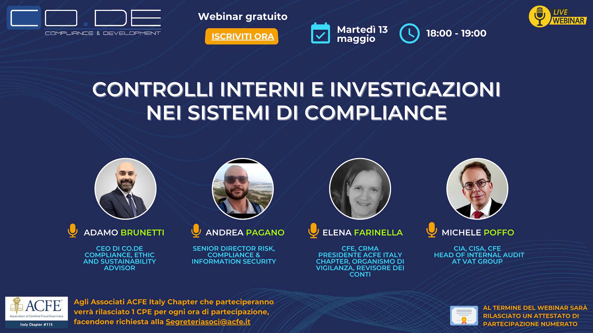 🎙 Webinar GRATUITO: “Controlli interni e investigazioni nei sistemi di compliance”.